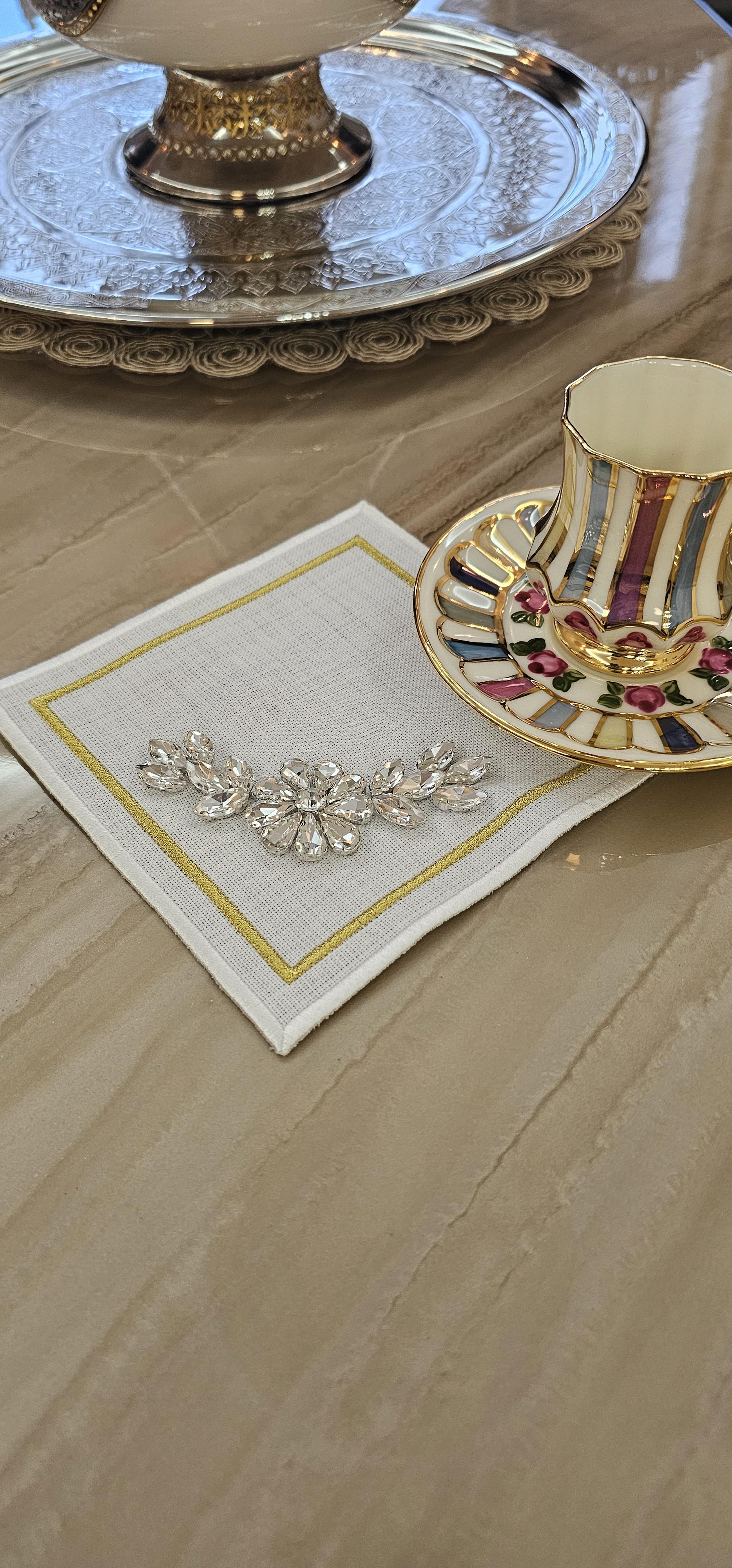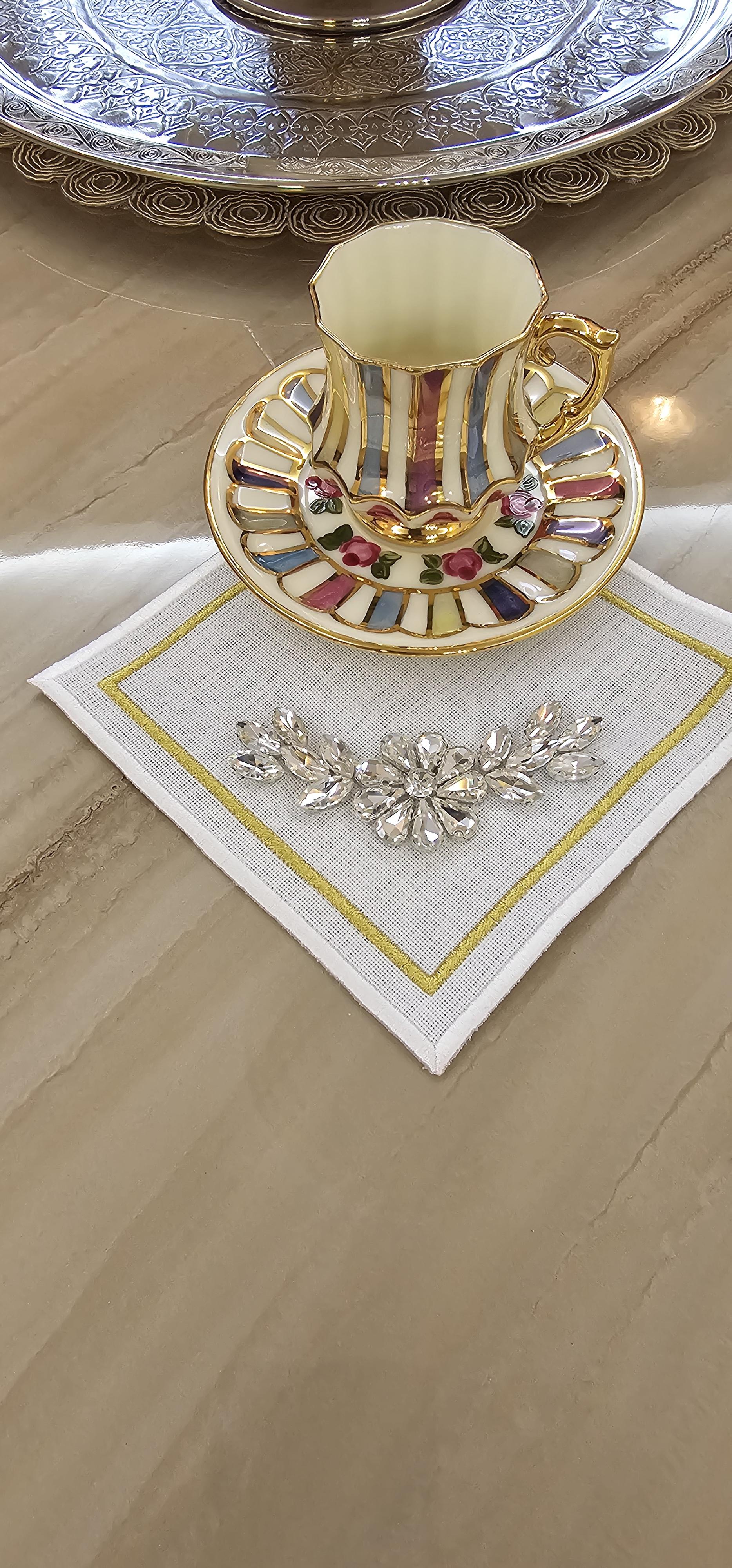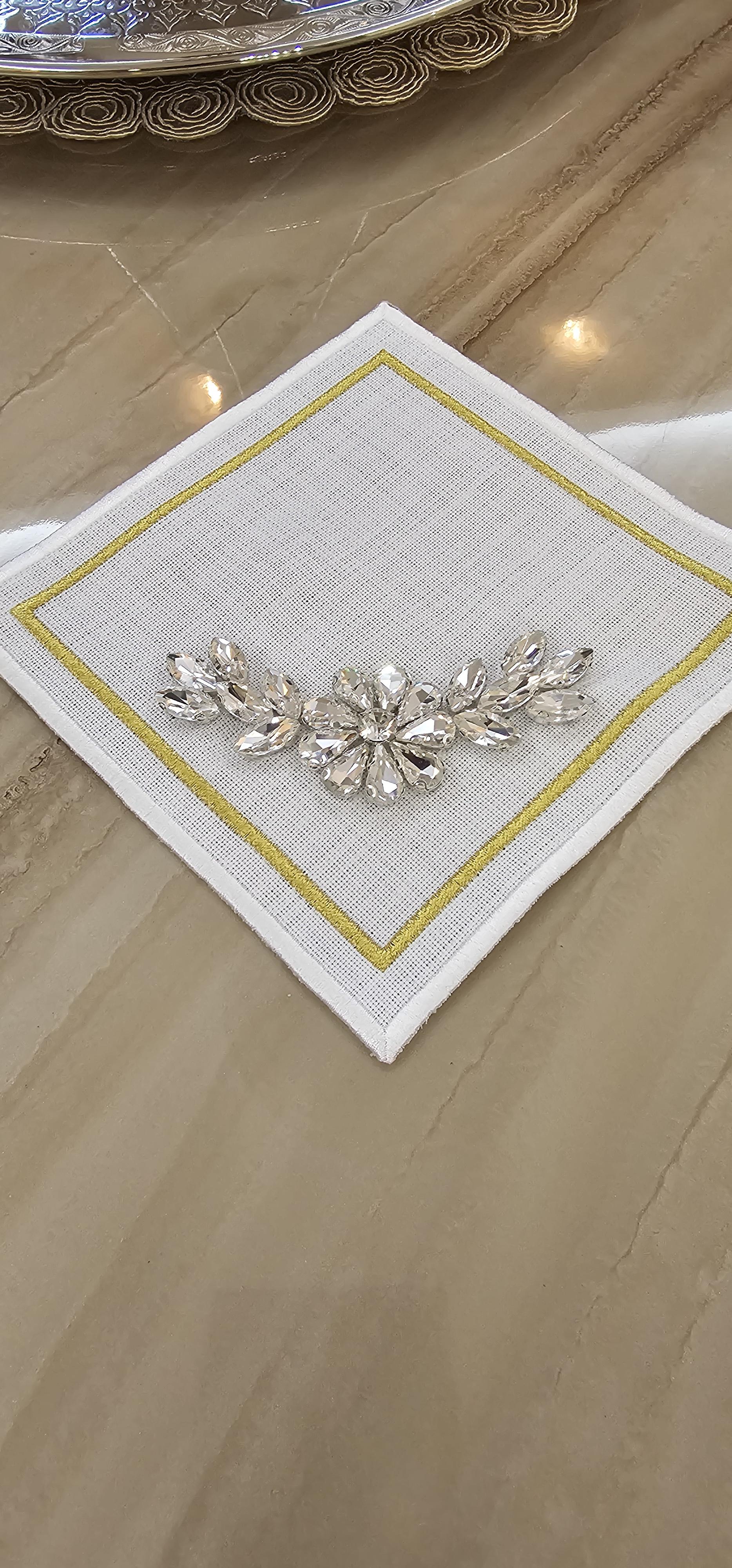 Şıklığı ve zarafeti evinize getiren Taş İşlemeli Peçete ,kahve yanlarınıza ve yemek masalarınıza estetik bir dokunuş katmak için özel olarak tasarlandı. Özel günlerde ya da günlük kullanımlarda masalarınızı süslemenize yardımcı olacak şık bir seçenektir.